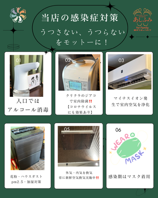 - 空気清浄機による徹底した換気(花粉対策・加湿)